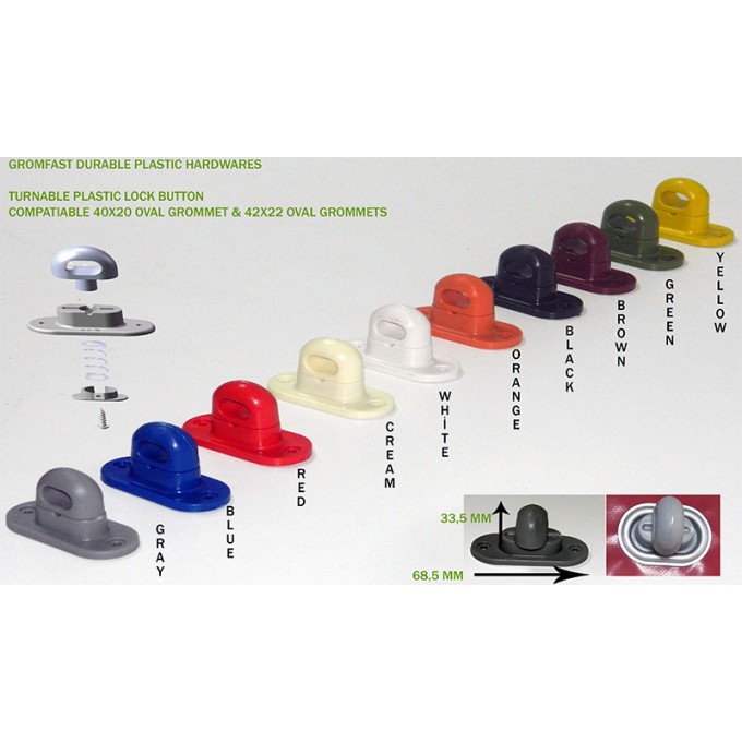 Turnable staple lock button is compatiable with oval 40x20 and 42x22 grommets.